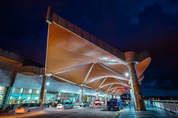 Exit to the arrival hall, look for taxi stand and get to the city.